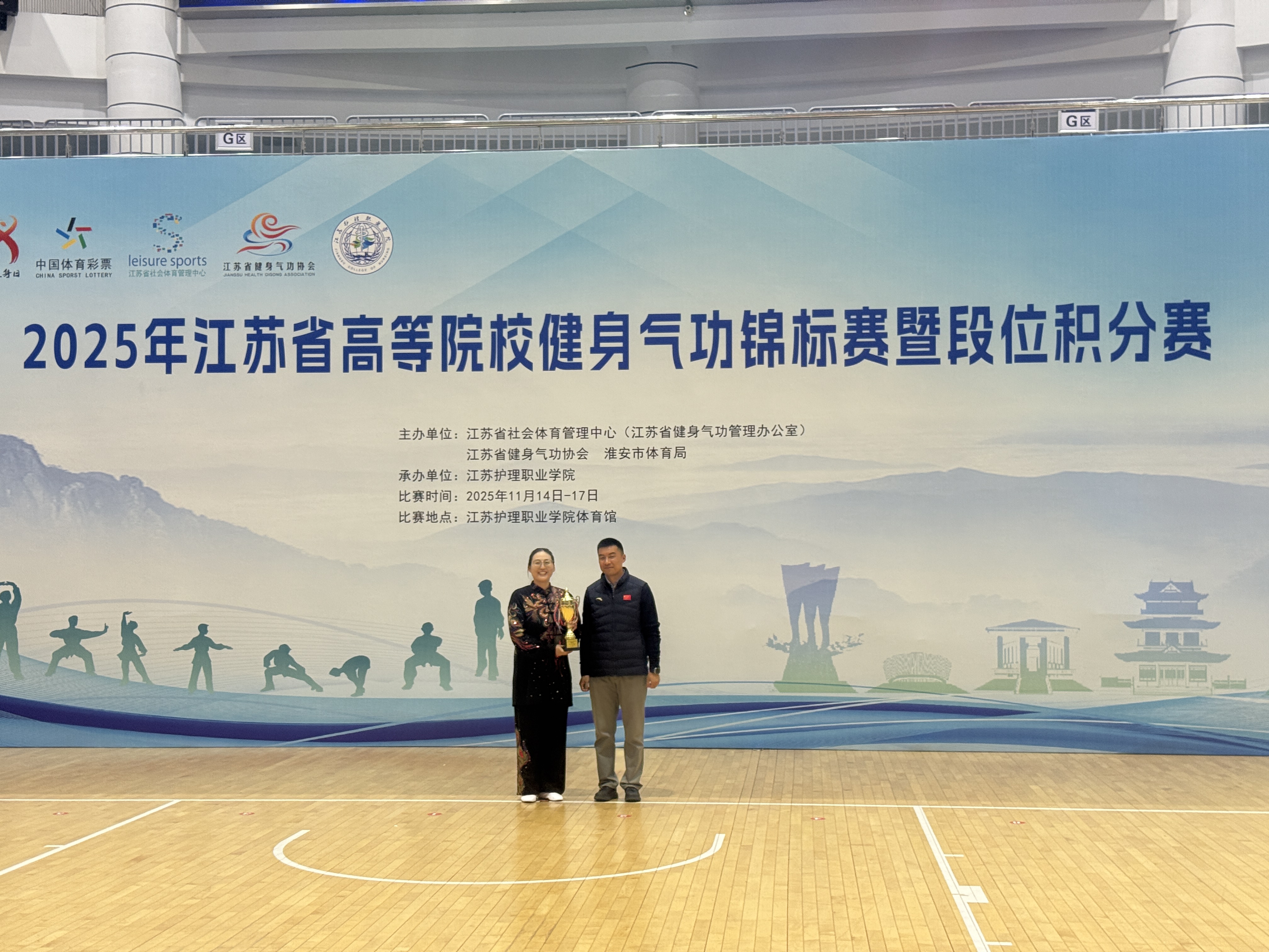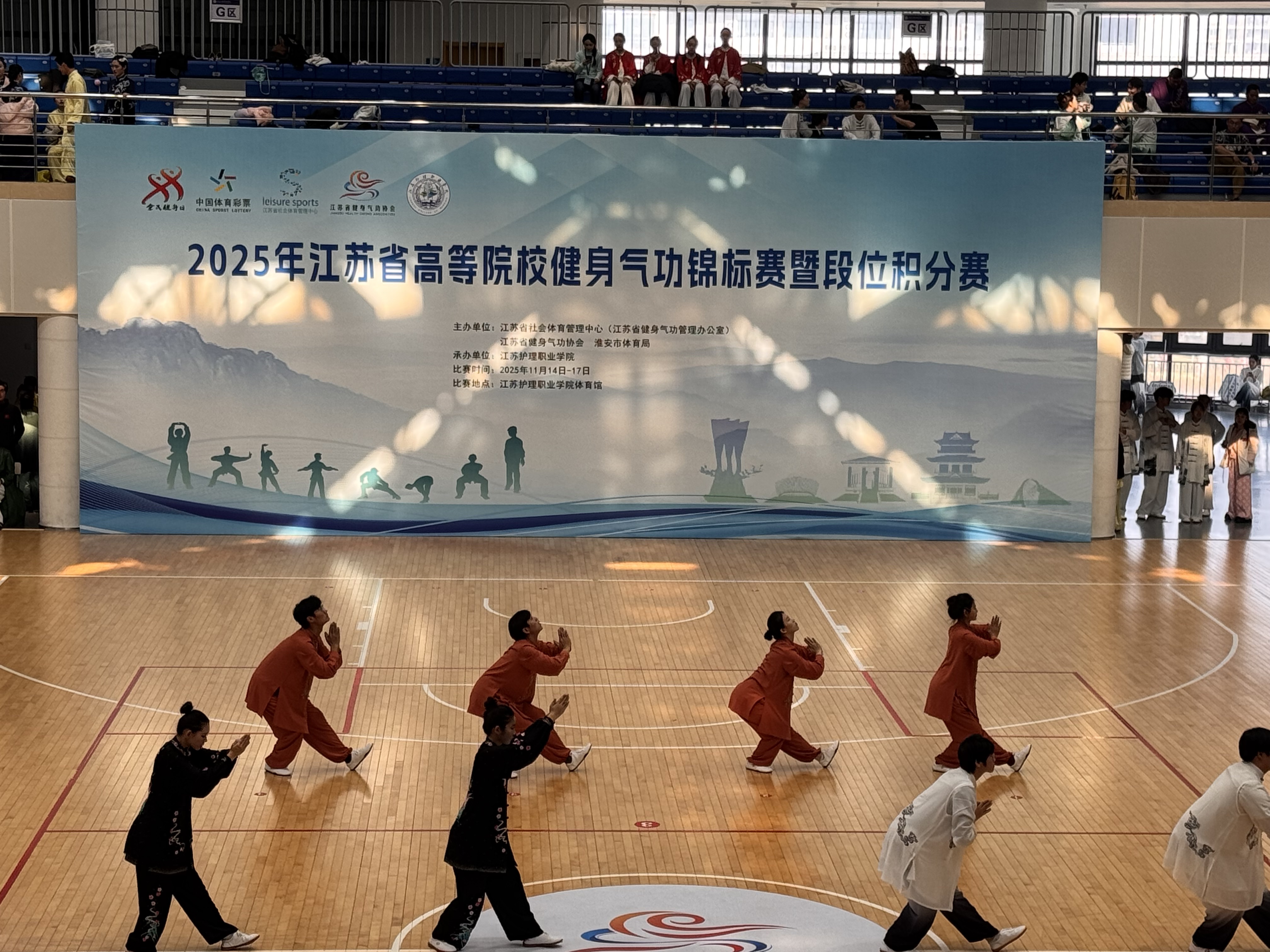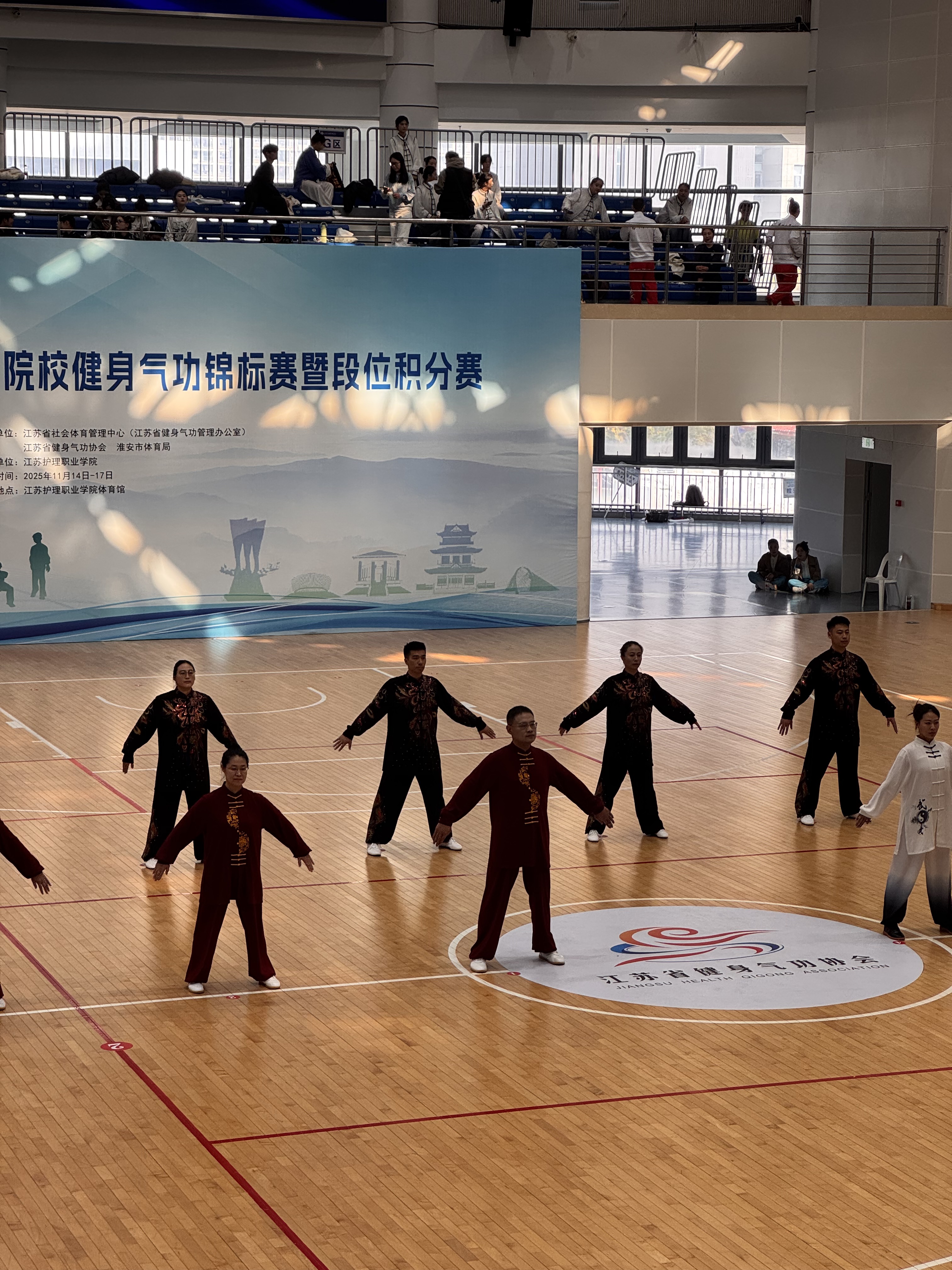 作为江苏省高校健身气功领域的年度盛会,本届比赛参赛队伍与人数较往年持续增长,赛场汇聚了全省各高校的气功精英,竞争异常激烈。我校高度重视此次赛事,教师尹玉彰、卢涛、张玮、耿燕露与学生陆涵、嵇欣雨、董程杰、张博畅组成师生代表队,赛前历经数月刻苦训练,从动作规范到呼吸协调,从团队配合到神韵展现,每一个细节都反复打磨,只为在赛场呈现最佳状态。